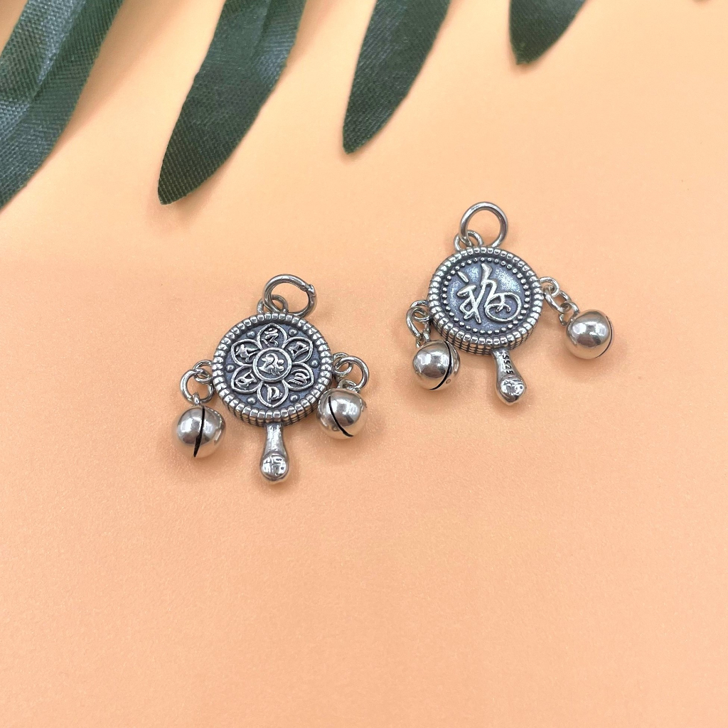 Charm móc treo lục lạc khắc chữ Phú Quý và Kinh Phật cầu bình an may mắn - Charm Bạc 925 - Mã CA1130