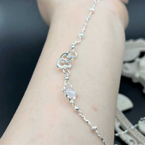 Lắc tay bạc 925 hạt trắng moon charm 2 trái tim lồng nhau - Charm Bạc 925 - VT2400149MOON