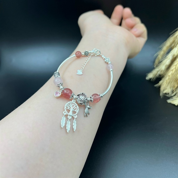 Vòng thạch anh hồng, dâu tây mix charm dream, gấu, trái tim - VT2400023VMIX