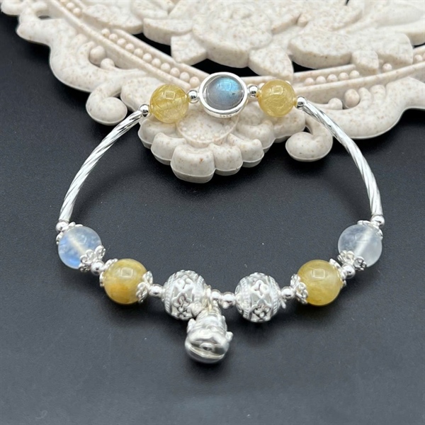 Vòng phong thủy mix mèo thần tài bạc 925 cho nữ đa sắc cực xinh - VT2400155VMIX