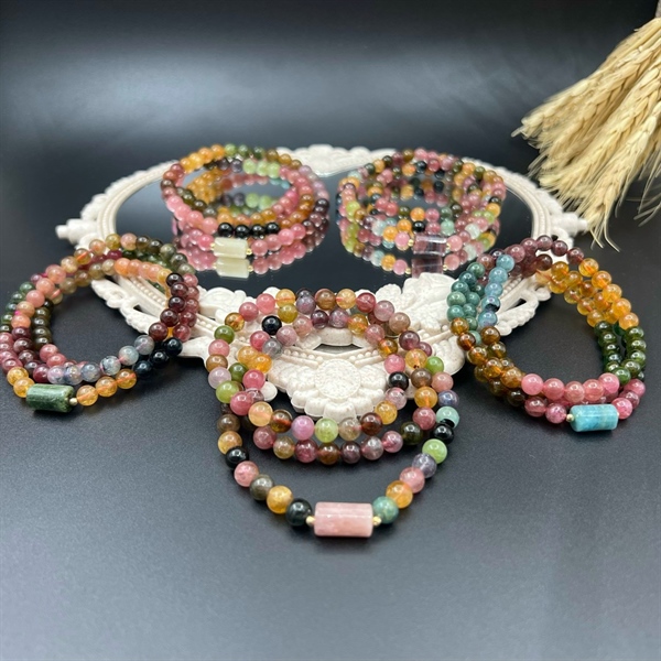 Vòng quấn 3 tourmaline mix lu , bi vàng 10k